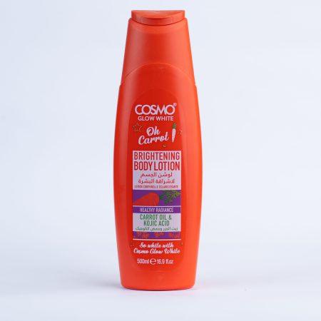 Discover the transformative power of Cosmo Brightening Body Lotion, enriched with Kojic Acid, Carrot Oil (B-carotene), and vitamins A & E. This advanced lotion nourishes and revitalizes your skin, revealing a lighter, softer, and more radiant complexion. It helps to maintain a clear, healthy appearance by reducing blemishes and improving overall skin tone.